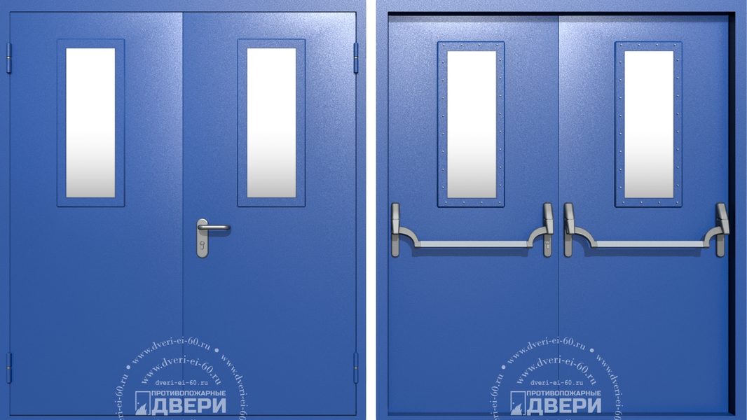 Двупольная остекленная противопожарная дверь (антипаника хром) ПД-ДC013c ДМП(О)-2 EI-60